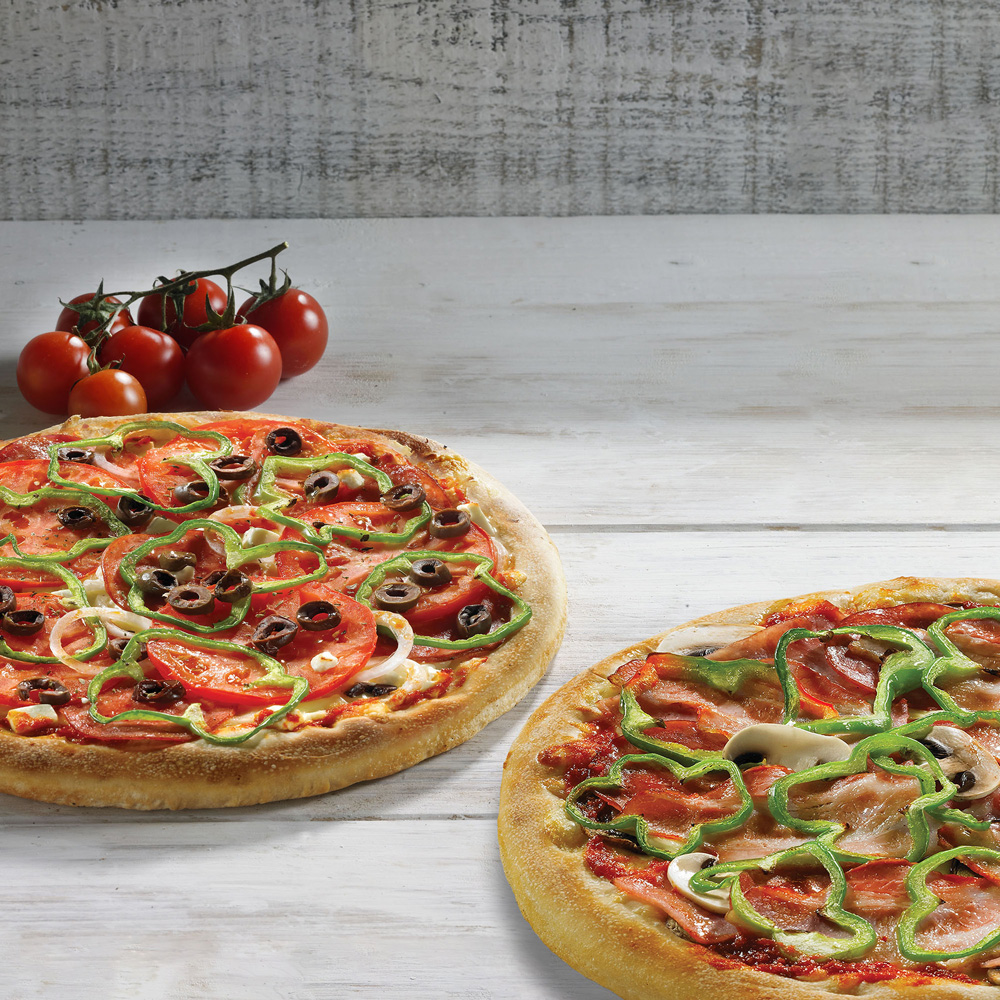 2 πίτσες ΑΠΟ 8 ΚΟΜΜΑΤΙΑ ΕΠΙΛΟΓΗ ΑΠΟ 26 ΓΕΥΣΕΙΣ